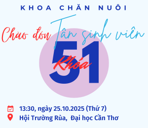 Khoa Chăn nuôi, Trường Nông nghiệp, Trường Đại học Cần Thơ trân trọng thông báo Chương trình hỗ trợ kinh phí thực hiện đề tài luận văn tốt nghiệp cho các ứng viên trúng tuyển kỳ thi tuyển sinh trình độ thạc sĩ ngành Chăn nuôi năm 2025.